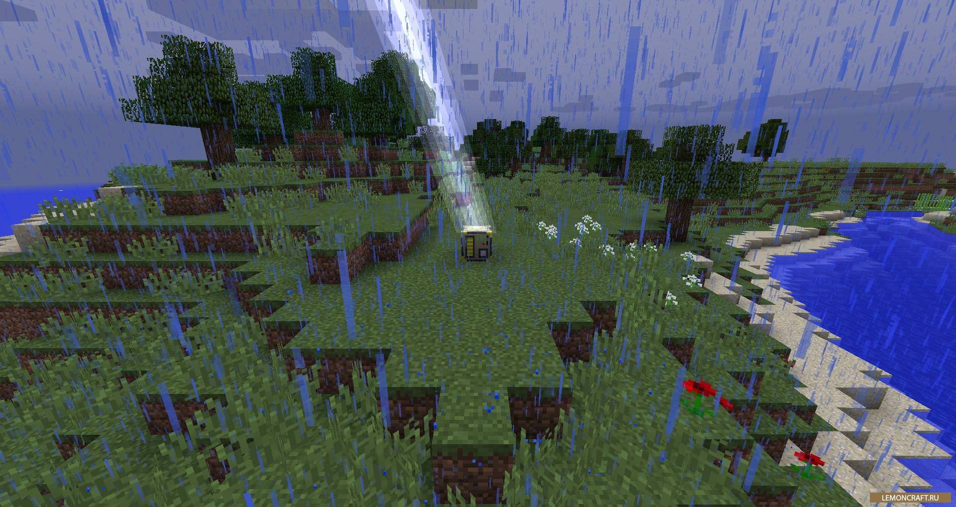 Мод Lightning Attractor позволяет установить блок, который будет притягивать на себя энергию молний. Эту энергию можно преобразовать в RF-энерги.